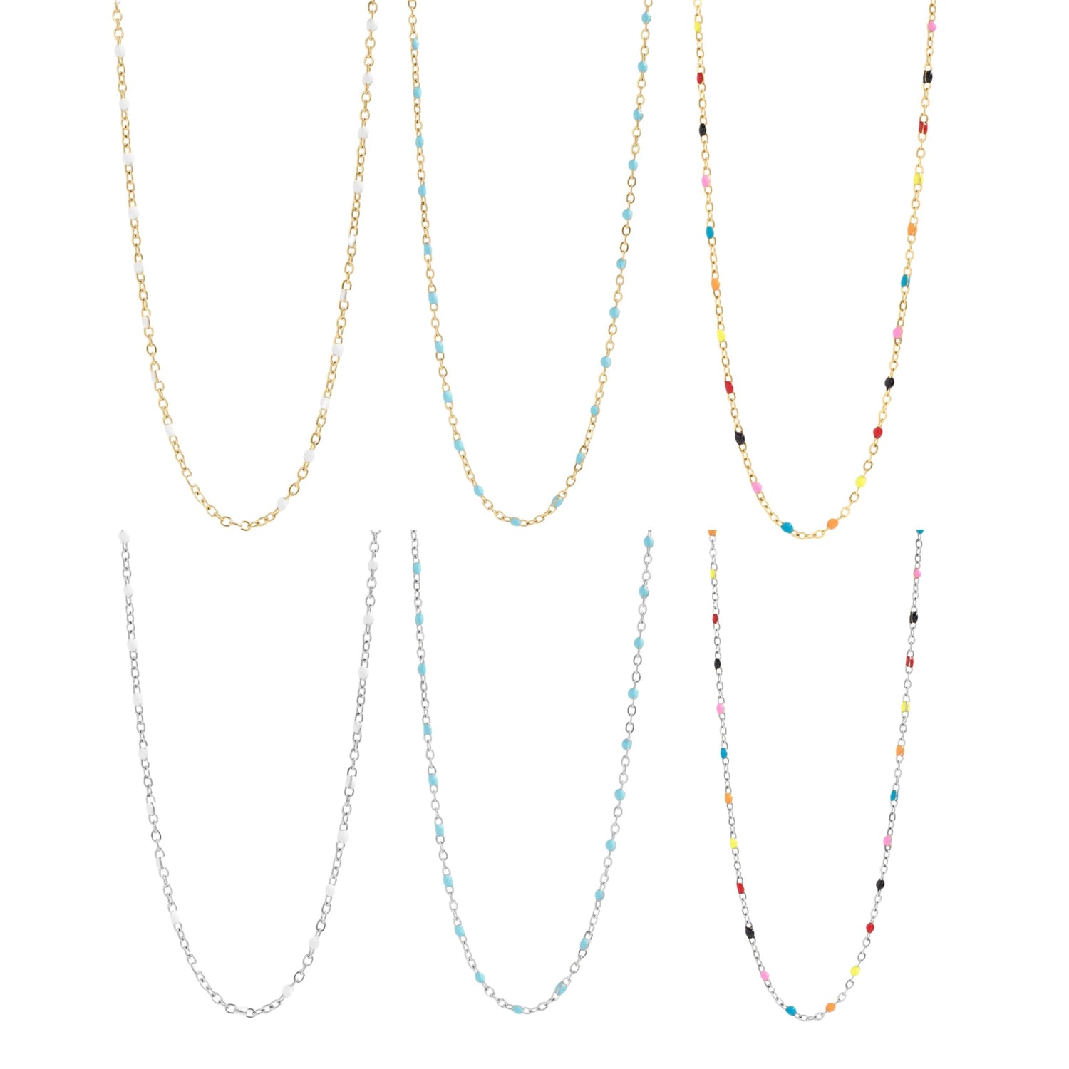 When choosing your stack, for a triple stack we recommend one choker, one mid length and one long necklace. For a double stack you can get creative and combine any two of the three types of necklaces.