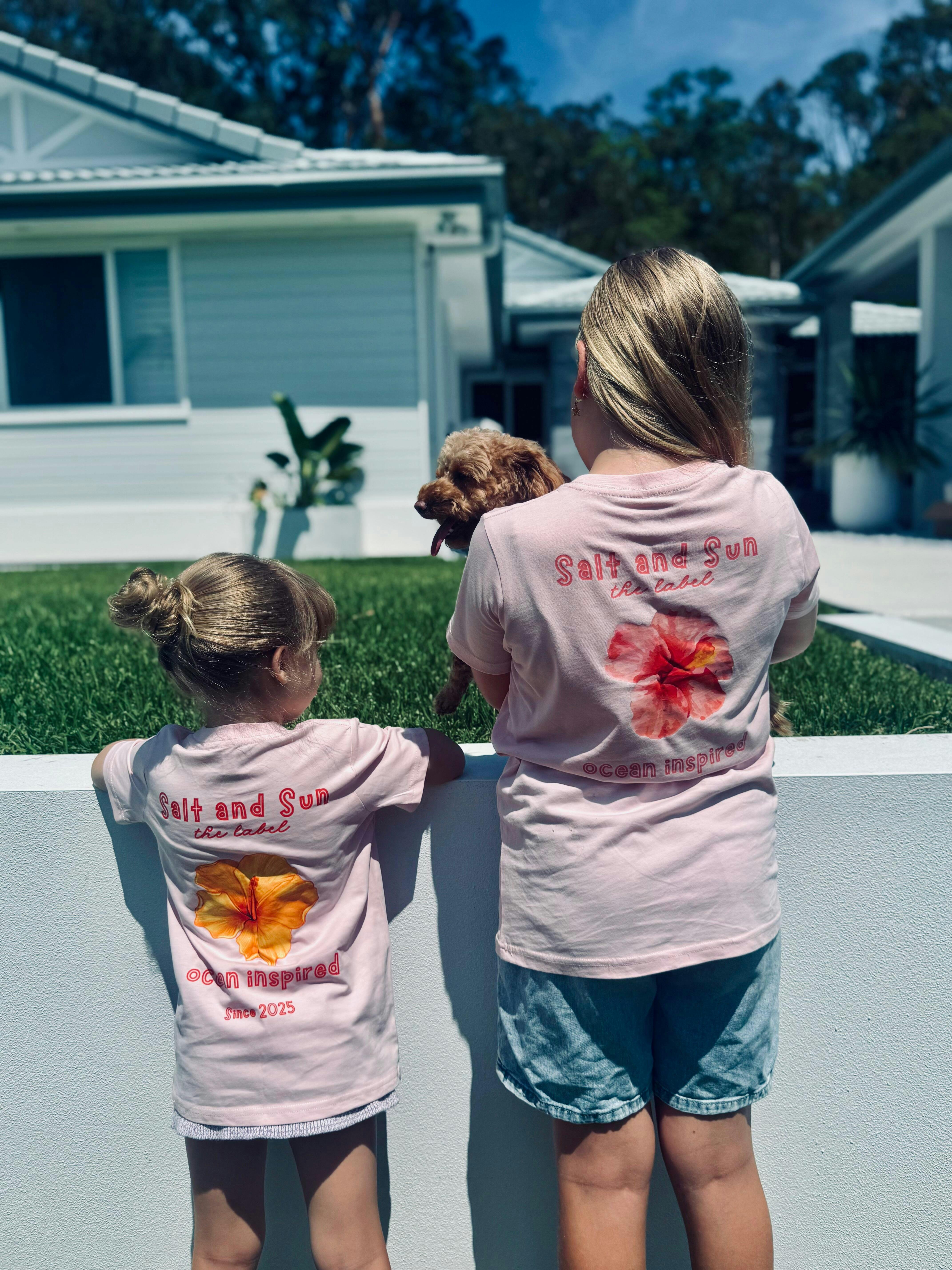 Salt and Sun TL Youth- Peach Hibiscus Tee