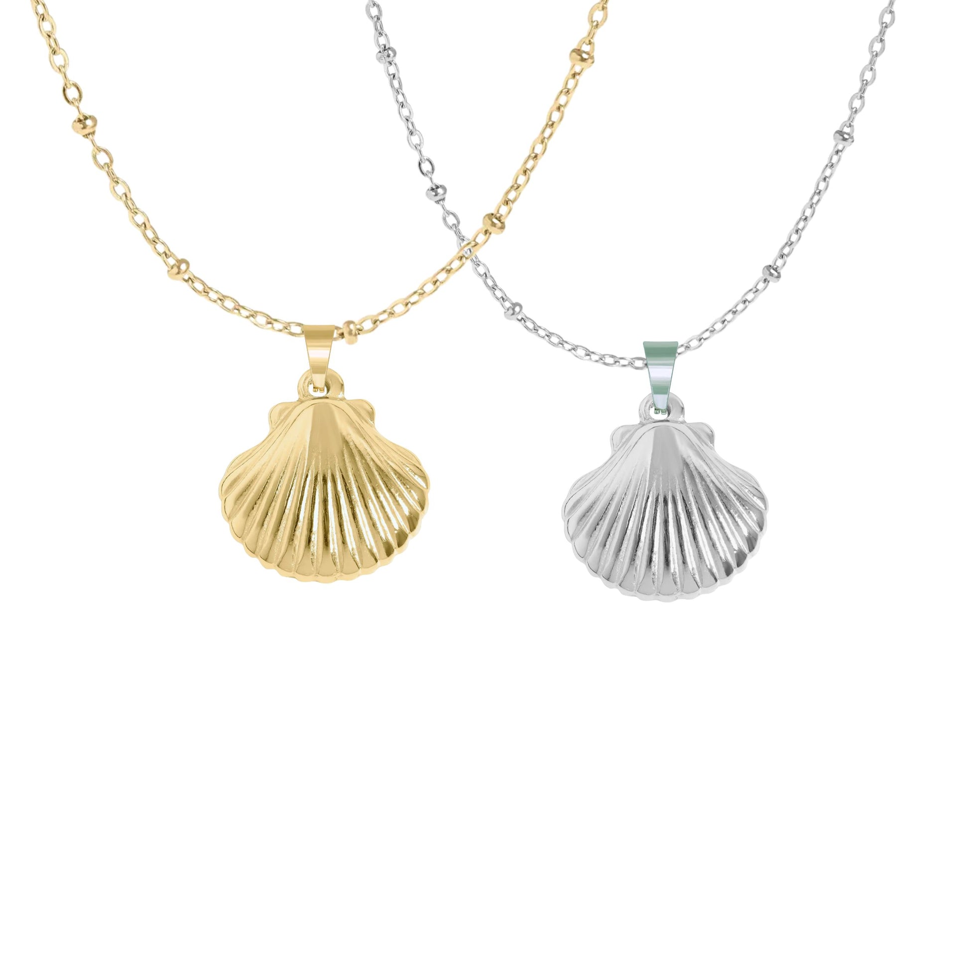 Choose from a gorgeous stainless steel or 18k gold pvd plated stainless steel necklace with a beautiful 2cm shell pendant.